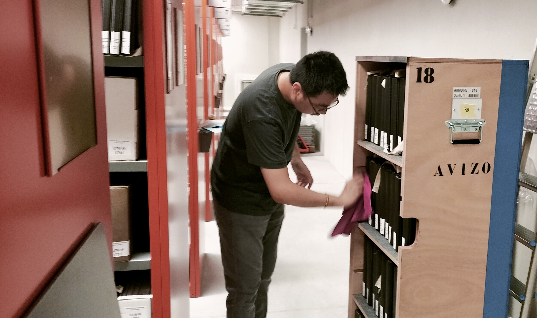 Une fois les documents acheminés par les déménageurs dans une salle préalablement définie, une autre équipe d’Avizo se charge de dépoussiérer les pochettes registres, de les placer sur les tablettes et de récoler dans la foulée les documents en magasin. Ces opérations s’exercent sous le contrôle attentif d’un agent des archives.