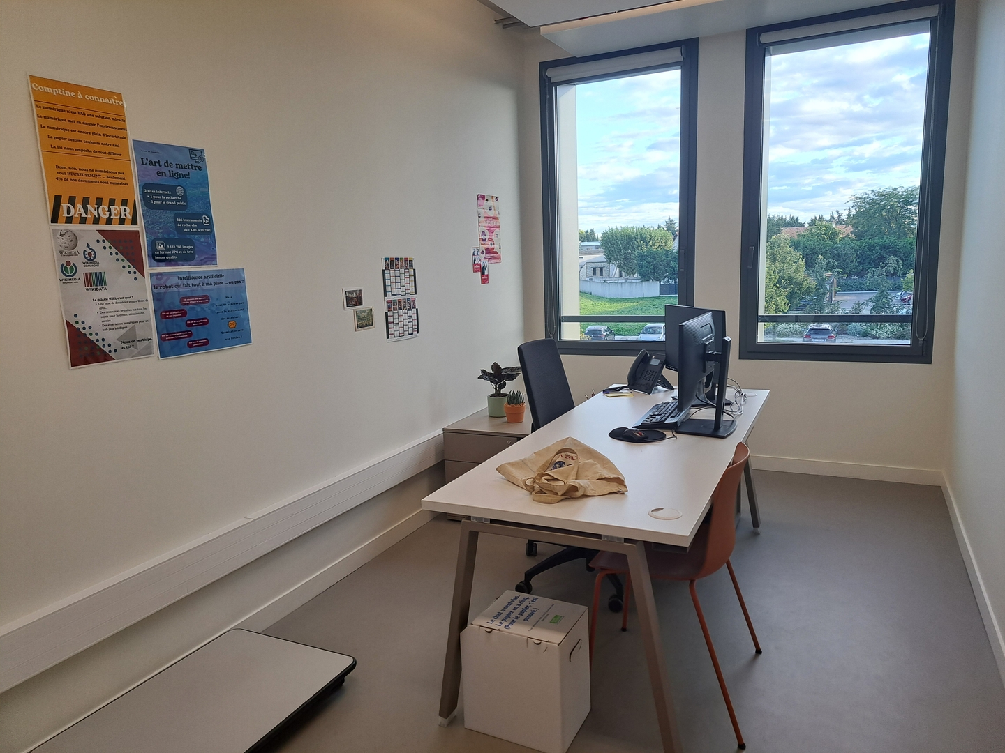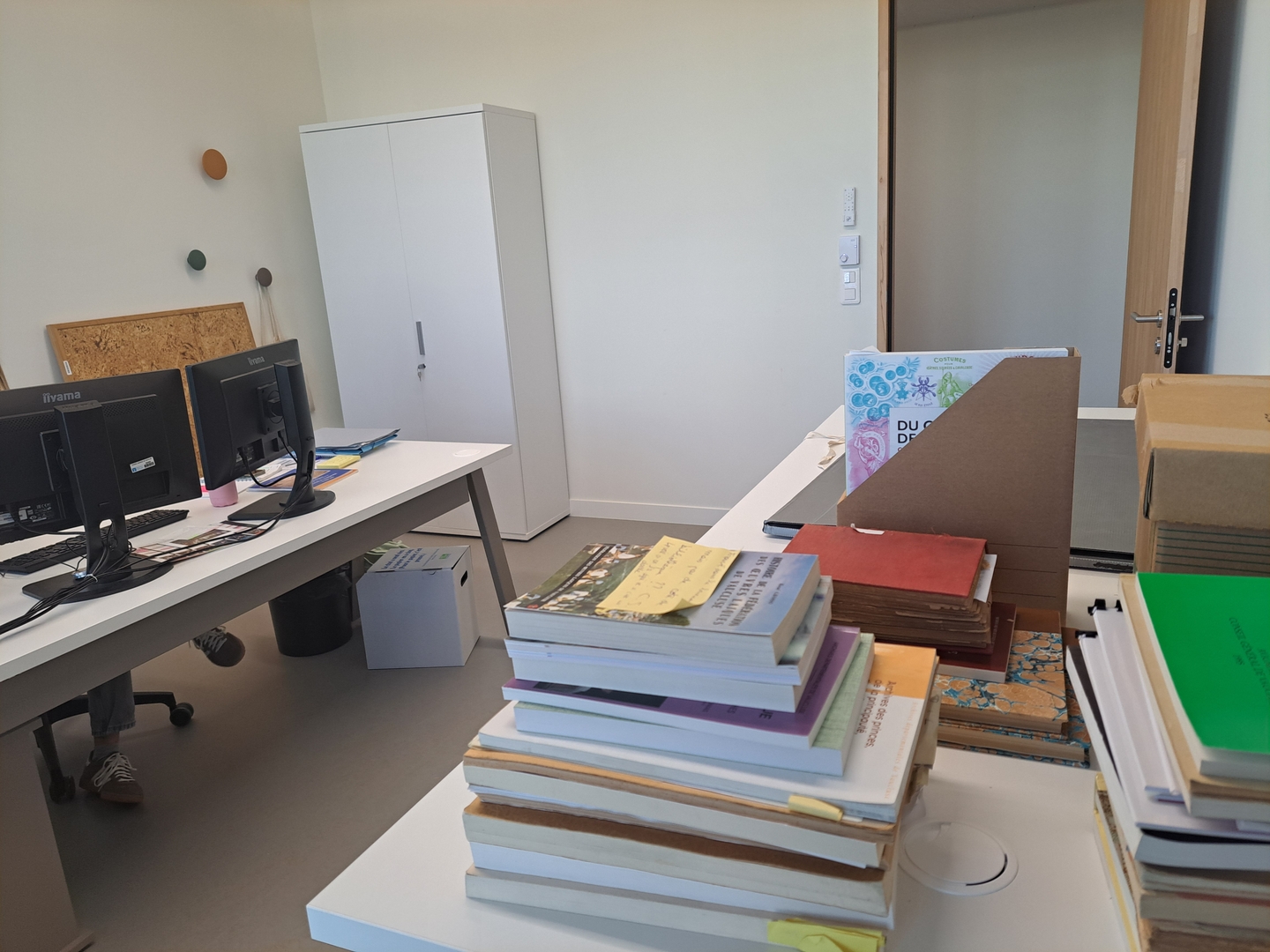 Une fois la réception faite, les archivistes ainsi que le personnel du Service valorisation patrimoniale et culturelle et celui du Service départemental de l’archéologie arrivé peu après, ont pris possession des lieux : branchement des ordinateurs -avec si nécessaire l’appui de la Direction des systèmes d’information- ; dossiers dans les armoires et sur les étagères ; quelques décorations sont même venues agrémentées les bureaux dans le respect bien sûr de ces nouveaux espaces de travail immaculés. La mission technique, déjà présente à Memento depuis plusieurs mois, a également prêté main-forte aux nouveaux arrivants, parfois perdus dans ce nouveau lieu aux dimensions hors normes.